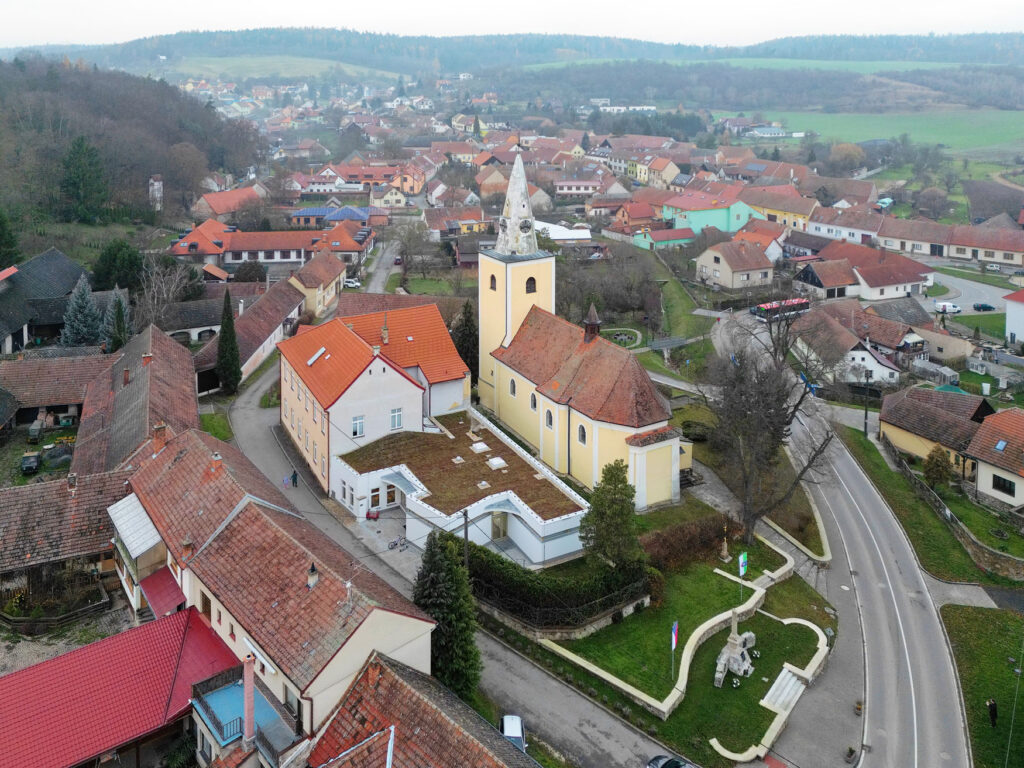 Dešťové vody jsou sváděny do akumulační nádrže a následně využívány na přilehlé zahradě.