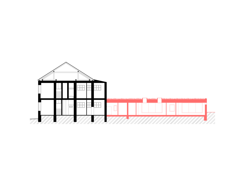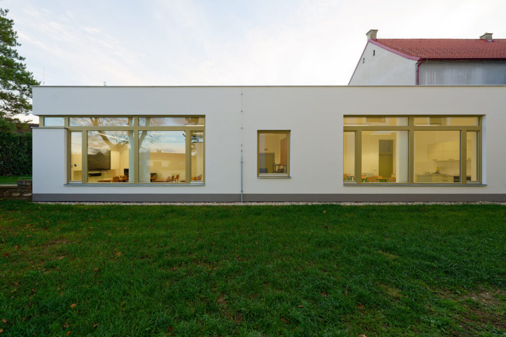 Přístavba je založena na železobetonových základových pasech, vyzděna z keramických tvárnic s integrovanou tepelnou izolací. Zastřešena železobetonovou deskou se souvrstvím zelené extenzivní střechy. Okna jsou dřevěná s trojsklem.